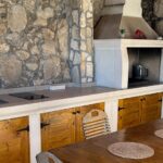 On the first floor the main entrance door leads into a hallway followed by a spacious living room. The living room is decorated with antique furniture and equipped with Wi-Fi internet and satellite TV. From the living room, you enter into the dining room and kitchen with a dining table seating 10 persons. The kitchen has all the necessary amenities: stove, oven, refrigerator, coffee machine, electric kettle, toaster, microwave, wine fridge. Both the dining room and the kitchen have access to the terrace with a breath-taking view of the bay. On the terrace there is a table seating 10 persons for alfresco dining, and sun chairs on the terrace.